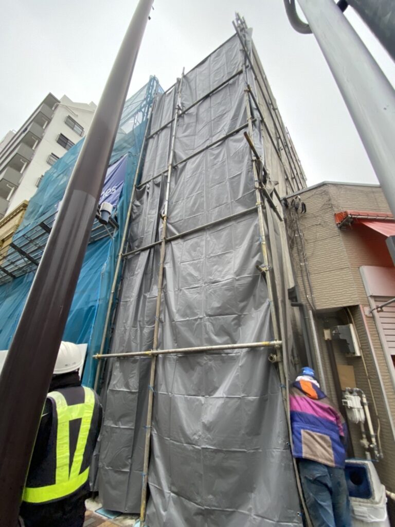 東京都台東区某町 施工事例⑪ 作業日誌 作業風景 コメント 前 次 解体工事:11日目作業時間:8時間工程:三棟目足場設置 2日間の休講を挟み3棟目に着手 この現場は、足場を接しすることに様々な書類が必要な現場足場設置の […]