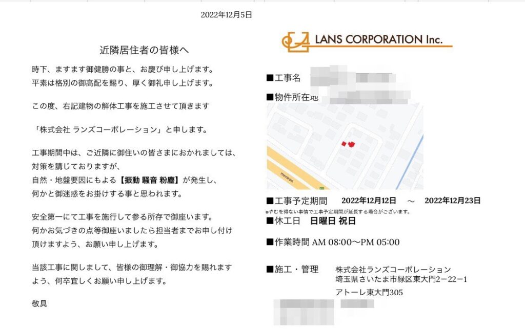 さいたま市大宮区某町 施工事例② 作業日誌 作業風景 前 次 コメント 解体工事:2日目作業時間:8時間工程:内装解体 初日から建物内に重機を入れることができたため内装解体のスピードが早く早速一階部分の解体工事が終了 ゴ […]