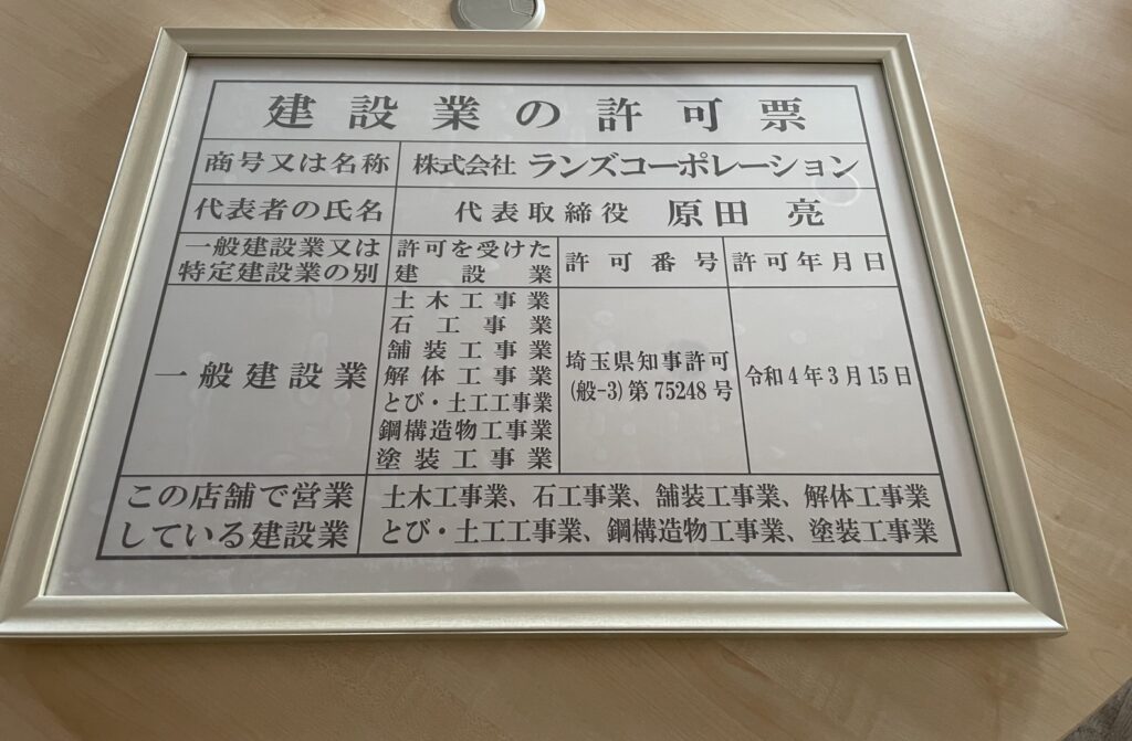 建設業の許可票が届く! コメント やっと、建設業の許可票が届きました! 重厚で高級感がある(‘ω’)ノ 建設業の許可票があると大きな工事(工事金額500万円以上)ができるためランズコーポレーション […]